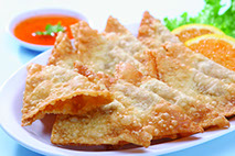 Cream cheese and imitation crab wrapped in wonton. Served with sweet sauce.